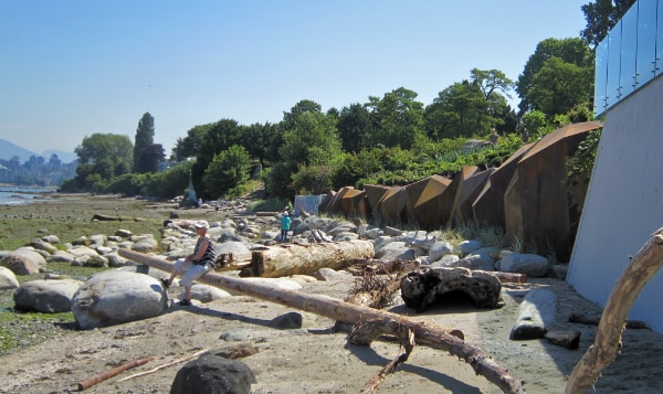 Metamorphous retaining wall composed of Corten steel behind the restored public waterfront in Point Grey, Vancouver. Photo: Tim Swanky.